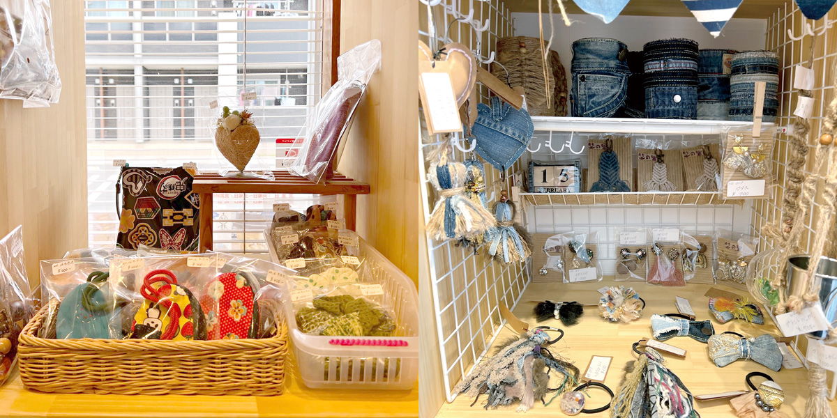 COOKIESすまいるカフェスペースは店内でコーヒー、クッキー、シフォンケーキなどをお召し上がりいただけます。また、レンタルボックスもございます。施設で作成された手作りの手芸・工芸品の展示販売、一般の作家様にもご利用頂いております。ぜひお立ち寄りくださいませ。